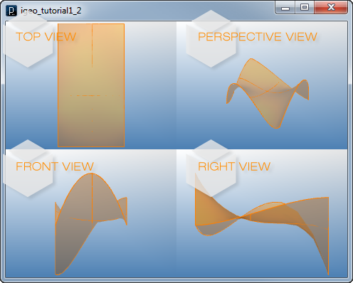 add_library('igeo') size( 480, 360, IG.GL ) IG.open("example_surf1.3dm")To navigate the 3D views, use mouse and keyboard as follows.