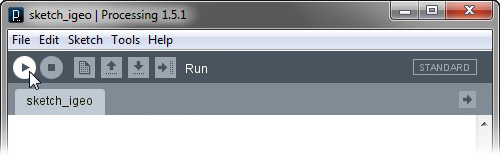 After having "import" lines for the libraries, the first line to write is "size" method. The first number of the input arguments specifies window width and the second one does window height. The third one IG.GL tells processing to use iGeo and this instantiates iGeo system in the background. Write this line before use of any iGeo methods or iGeo classes (except configuration setting of iGeo system).