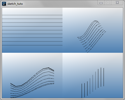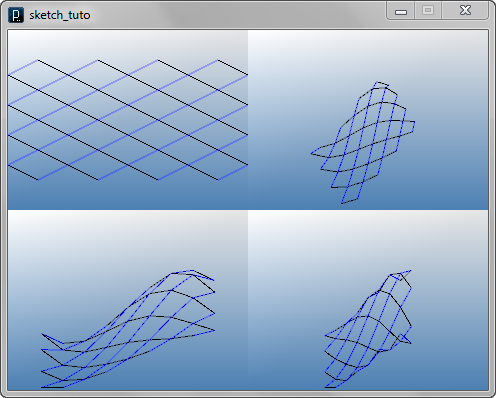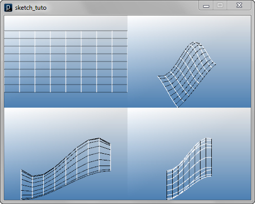 import processing.opengl.*; import igeo.*; size( 480, 360, IG.GL ); //IG.open("surface1.3dm"); //input geometry from 3dm file IG.open("surface1.obj"); ///input geometry from OBJ file ISurface[] surfs = IG.surfaces(); for( ISurface surf : surfs ){ int unum = 8, vnum = 8; double uinc = 1.0/unum, vinc = 1.0/vnum; for(int i=0; i < unum; i++){ for(int j=0; j <= vnum; j++){ IVec pt1 = surf.pt(i*uinc, j*vinc); IVec pt2 = surf.pt((i+1)*uinc, j*vinc); new ICurve(pt1, pt2).clr(0); } } surf.del(); }