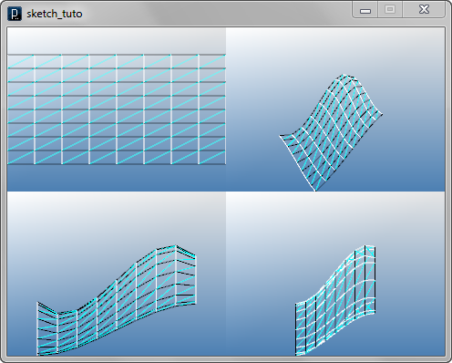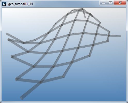 import processing.opengl.*; import igeo.*; size( 480, 360, IG.GL ); //IG.open("surface1.3dm"); //input geometry from 3dm file IG.open("surface1.obj"); ///input geometry from OBJ file ISurface[] surfs = IG.surfaces(); for( ISurface surf : surfs ){ int unum = 8, vnum = 8; double uinc = 1.0/unum, vinc = 1.0/vnum; for(int i=0; i < unum; i++){ for(int j=0; j <= vnum; j++){ if( (i+j)%2 == 0 ){ IVec pt1 = surf.pt(i*uinc, j*vinc); if( j > 0){ IVec pt2 = surf.pt((i+1)*uinc, (j-1)*vinc); new ICylinder(pt1, pt2, 0.5); } if( j < vnum ){ IVec pt3 = surf.pt((i+1)*uinc, (j+1)*vinc); new ICylinder(pt1, pt3, 0.5); } } } } surf.del(); }