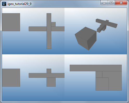 import processing.opengl.*; import igeo.*; void setup(){ size(480, 360, IG.GL); MyModule module1 = new MyModule(new IVec(0,0,0), 20); module1.createModule(); MyModule module2 = new MyModule(new IVec(50,0,0)); module2.createModuleWithArm(5, 40); } class MyModule{ // instance fields IVec position; double size; // instance methods MyModule(IVec pos, double sz){ position = pos; size = sz; } MyModule(IVec pos){ position = pos; size = 10.0; // default size } void createModule(){ new IBox(position, size); } void createModuleWithArm(double armSize, double armLen){ new IBox(position, size); IVec armPos1 = position.dup().add(-armLen/2,0,0); armPos1.add(0,0,size); new IBox(armPos1, armLen, armSize, armSize); IVec armPos2 = armPos1.dup().add(armLen/2,-armLen/2,0); armPos2.add(0,0,armSize); new IBox(armPos2, armSize, armLen, armSize); } }