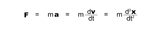 Then a force, a mass and an acceleration are related by this equation of Newton's laws of motion, and therefore a velocity and a position are also related through derivation with respect to time.