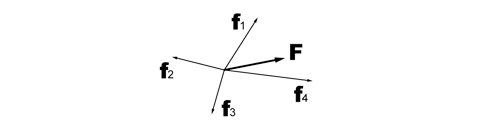 Whereas a position and a velocity are internal states of an object, a force is something which can be applied to the object from the outside of the object. In each time frame, a force is applied to the object and updates its velocity and position. An object could receive multiple vector forces and those forces are calculated into a resultant force vector as described in the following formula.