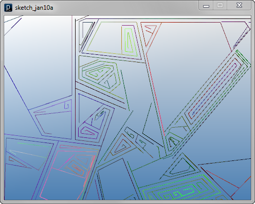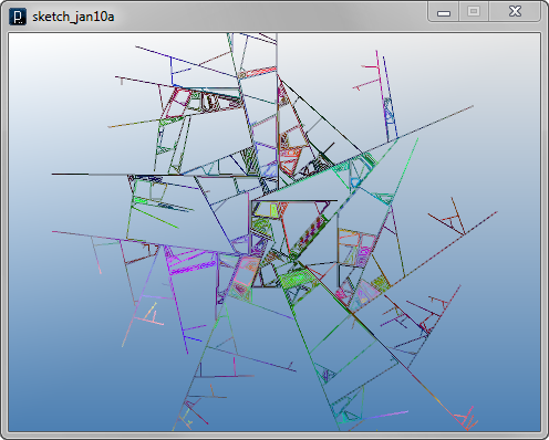 The next code change the previous code to round the turning corner by bending the lines with a few segments. To enable bending through multiple generation of agents, the instance field of bendAngle and bendCount are added to LineAgent class.