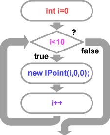 import processing.opengl.*; import igeo.*; size( 480, 360, IG.GL ); new IPoint(0,0,0); // 1st execution. i=0 new IPoint(1,0,0); // 2nd execution. i=1 new IPoint(2,0,0); // 3rd execution. i=2 new IPoint(3,0,0); // 4th execution. i=3 new IPoint(4,0,0); // 5th execution. i=4 new IPoint(5,0,0); // 6th execution. i=5 new IPoint(6,0,0); // 7th execution. i=6 new IPoint(7,0,0); // 8th execution. i=7 new IPoint(8,0,0); // 9th execution. i=8 new IPoint(9,0,0); //10th execution. i=9