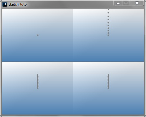 import processing.opengl.*; import igeo.*; size( 480, 360, IG.GL ); for( int i=0; i < 10; i++){ new IPoint(0, 0, i*5); }