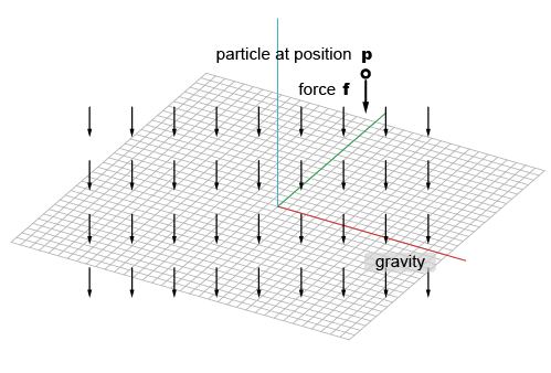 add_library('igeo') size(480, 360, IG.GL) IAttractor(0,0,0).noDecay() IFieldVisualizer(-100,-100,0,100,100,0,20,20,1).fixLength(False)