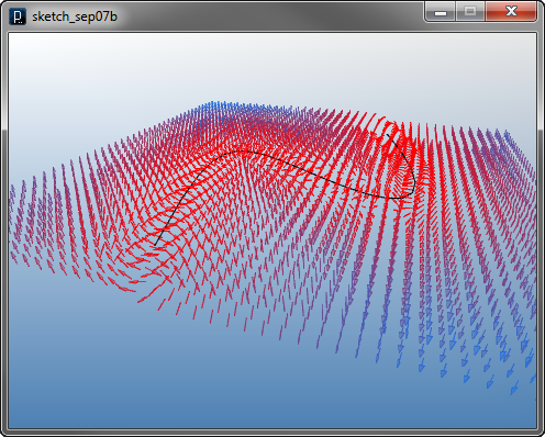 add_library('igeo') size(480, 360, IG.GL) IG.open("curve_field1.3dm") for i in range(IG.curveNum()) : ICurveCurlField(IG.curve(i)).intensity(10).linear(50) IFieldVisualizer(-20,-20,-1, 20,20,1, 40,40,2)