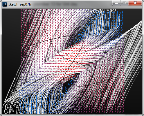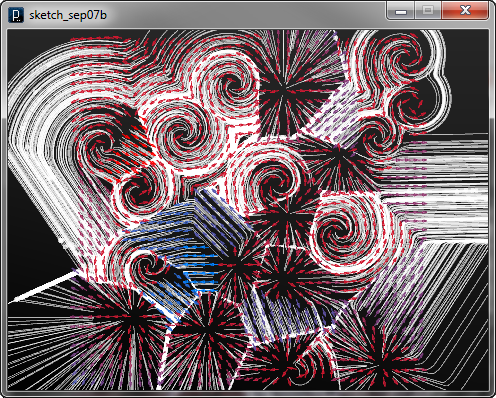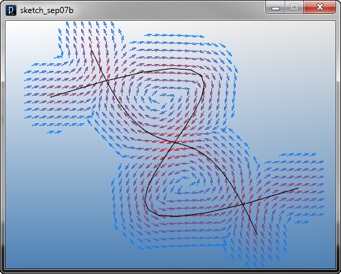 add_library('igeo') size(480, 360, IG.GL) IG.open("curve_field2.3dm") for i in range(IG.curveNum()) : ICurveTangentField(IG.curve(i)).linear(5).intensity(10) IFieldVisualizer(-20,-20,0, 20,20,0, 40,40,1)