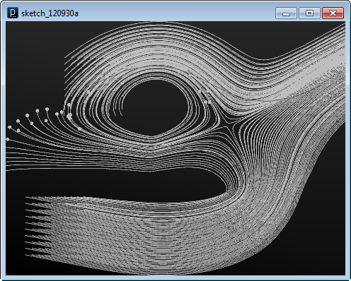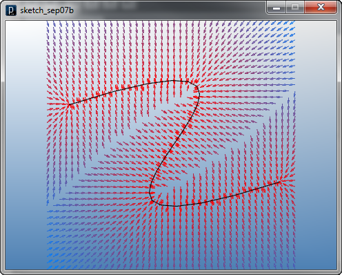add_library('igeo') size(480, 360, IG.GL) IG.open("curve_field2.3dm") field = ICompoundField() for i in range(IG.curveNum()) : field.add(ICurveTangentField(IG.curve(i)).linear(50).intensity(10)) IFieldVisualizer(-20,-20,0, 20,20,0, 40,40,1)