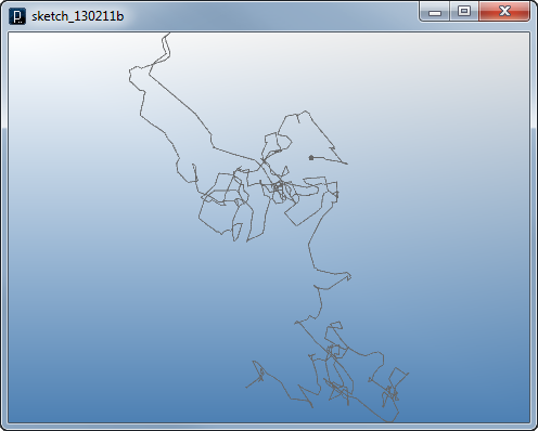 add_library('igeo') def setup() : size(480,360,IG.GL) MyParticle(IVec(0,0,0), IVec(10,0,0)) class MyParticle(IParticleTrajectory) : def __init__(self, p, v) : IParticleTrajectory.__init__(self,p,v) # initialize with position and velocity self.fric(0.05) # 5% friction def update(self) : if IRand.pct(10) : self.push(IRand.pt(-1000,-1000,0,1000,1000,0))