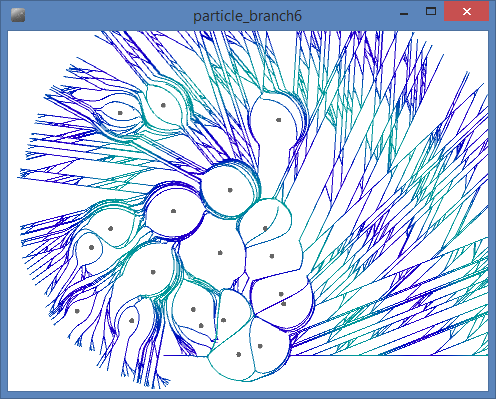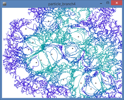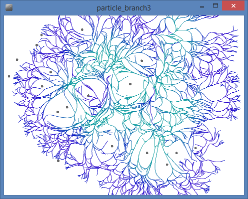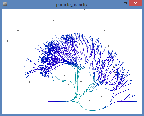 The first code below has a line agent class LineAgent which reproduces a child line agent in a specific direction but the agent class inherits IParticle class instead of inheriting IAgent class in the previous line agent classes like the ones in this page. In the update method, the agent instantiates ISpringLine which is a line with spring force to maintain the distance of two end point particles instead of a simple line in the previous line agents.