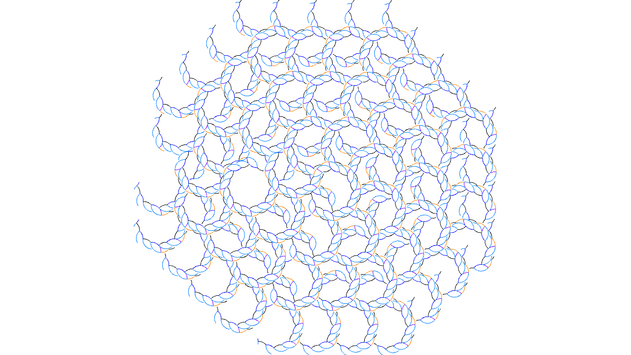 import processing.opengl.*; import igeo.*; void setup(){ size(480, 360, IG.GL); IConfig.syncDrawAndDynamics=true; IG.bg(1.0); new ClockStackAgent(new IVec(0,0,0), new IVec(10,0,0), new IVec(0,0,1)).clr(0); } class Orientation{ IVec dir, nml; // as xyz coordinates system, dir corresponds to Y and nml corresponds to Z boolean righthand; // right hand coordinates system or not Orientation(IVec d, IVec n, boolean righthandsys){ dir=d; nml=n; righthand=righthandsys; } Orientation(IVec d, IVec n){ this(d,n,true); } Orientation(Orientation o){ dir=o.dir.cp(); nml=o.nml.cp(); righthand=o.righthand; } Orientation cp(){ return new Orientation(this); } IVec dir(){ return dir.cp(); } IVec front(){ return dir(); } IVec back(){ return dir().neg(); } IVec nml(){ return nml.cp(); } IVec up(){ return nml(); } IVec down(){ return nml().neg(); } IVec side(){ if(righthand){ return dir.cross(nml); }else{ return nml.cross(dir); } } IVec right(){ return side(); } IVec left(){ if(righthand){ return nml.cross(dir); }else{ return dir.cross(nml); } } Orientation rot(double ang){ dir.rot(nml, ang); return this; } Orientation rot(IVec ax, double ang){ dir.rot(ax,ang); nml.rot(ax,ang); return this; } Orientation pitch(double ang){ IVec ax = dir.cross(nml); dir.rot(ax, ang); nml.rot(ax, ang); return this; } Orientation yaw(double ang){ dir.rot(nml, ang); return this; } Orientation roll(double ang){ nml.rot(dir, ang); return this; } Orientation ref(IVec refNml){ dir.ref(refNml); nml.ref(refNml); righthand = !righthand; return this; } Orientation flip(){ dir.flip(); righthand = !righthand; return this; }// flip front/back Orientation flipNml(){ nml.flip(); righthand = !righthand; return this; }// flip up/down Orientation flipSide(){ righthand = !righthand; return this; }// flip left/right Orientation mul(double v){ dir.mul(v); return this; } Orientation div(double v){ dir.div(v); return this; } } class ClockStackAgent extends IAgent{ final double threshold = 1; // collision threshold IVec pos, pos2; Orientation orient; int[] clocks; boolean isColliding = false, isStopped = false; ArrayList< IVec > pts; ArrayList< Orientation > nextOrient; ArrayList< int[] > nextClocks; ArrayList< IAttribute > nextAttr; IBounds bounds; ClockStackAgent(IVec p, Orientation o, int[] clok){ pos = p; orient = o; clocks = clok; } ClockStackAgent(IVec p, IVec d, IVec n, int[] clok){ pos = p; if(d.isParallel(n)){ if(!n.isParallel(IG.zaxis)) n = new IVec(0,0,1); else n = new IVec(0,1,0); } if(d.dot(n)!=0) n = d.cross(n).icross(d); orient = new Orientation(d,n); clocks = clok; } ClockStackAgent(IVec p, IVec d, IVec n){ this(p,d,n,new int[0]); } ClockStackAgent(IVec p, IVec d){ this(p,d,new IVec(0,0,1),null); } IVec pos2(){ if(pos2==null) pos2 = pos.cp(orient.dir); return pos2; } void interact(ArrayList< IDynamics > agents){ if(threshold > 0 && !isStopped){ IVec pt2 = pos2(); for(int i=0; i < agents.size() && !isColliding; i++){ if(agents.get(i) instanceof ClockStackAgent){ ClockStackAgent a = (ClockStackAgent)agents.get(i); if(a==this){ // check self collision for(int j=0; pts!=null && j < pts.size()-2 && !isColliding; j++){ // exclude last segment if(IVec.isSegCloserThan(pos, pt2, pts.get(j), pts.get(j+1), threshold)){ isColliding = true; } } } else if(a.time() > 0 || !a.isColliding){ // a!=this if(a.bounds!=null && bounds!=null){ IBounds newbounds = bounds.cp(); newbounds.compare(pt2); if(!newbounds.isCloserThan(a.bounds,threshold)){ continue; } } IVec apt2 = a.pos2(); if(IVec.isSegCloserThan(pos, pt2, a.pos, apt2, threshold) && (!pos.eq(a.pos) || pt2.eq(apt2)) ){ isColliding = true; } for(int j=0; a.pts!=null && j < a.pts.size() && !isColliding; j++){ IVec apt3 = a.pos; if(j < a.pts.size()-1) apt3 = a.pts.get(j+1); if(IVec.isSegCloserThan(pos, pt2, a.pts.get(j), apt3, threshold) && (!pos.eq(a.pos) || pt2.eq(apt2) || j < a.pts.size()-1) ){ isColliding = true; } } } } } } } int clock(int i){ if(i >= clocks.length) return 0; return clocks[i]; } IAttribute next(int incrementClock){ return next(orient, incrementClock); } IAttribute next(Orientation o, int incrementClock){ if(nextOrient==null){ nextOrient = new ArrayList< Orientation >(); nextClocks = new ArrayList< int[] >(); nextAttr = new ArrayList< IAttribute >(); } nextOrient.add(o); int[] clocks2 = new int[incrementClock+1 > clocks.length?incrementClock+1:clocks.length]; for(int i=0; i < clocks2.length; i++){ if(i < incrementClock) clocks2[i] = 0; else if(i < clocks.length) clocks2[i] = clocks[i]; } clocks2[incrementClock]++; nextClocks.add(clocks2); IAttribute attr = null; if(attr()==null) attr = new IAttribute(); else attr = attr().cp(); // attribute (color) for next agent nextAttr.add(attr); return attr; } void generate(){ if(nextOrient==null || nextOrient.size()==0){ isStopped=true; return; } for(int i=0; i < nextOrient.size(); i++){ if(i > 0){ new ClockStackAgent(pos2(), nextOrient.get(i), nextClocks.get(i)).attr(nextAttr.get(i)); } else{ if(pts==null){ pts = new ArrayList< IVec >(); bounds = new IBounds(pos); bounds.compare(pos2); } if(pts.size() > 1 && pts.get(pts.size()-1).isOnLine(pos, pts.get(pts.size()-2))){ pts.set(pts.size()-1, pos); } else{ pts.add(pos); } // past points pos = pos2(); orient = nextOrient.get(i); clocks = nextClocks.get(i); attr(nextAttr.get(i)); bounds.compare(pos2); // next point } } pos2 = null; // reset pos2 nextOrient=null; nextClocks=null; nextAttr=null; } IVec dir(){ return orient.dir(); } IVec front(){ return orient.front(); } IVec back(){ return orient.back(); } IVec nml(){ return orient.nml(); } IVec up(){ return orient.up(); } IVec down(){ return orient.down(); } IVec right(){ return orient.right(); } IVec left(){ return orient.left(); } IVec side(){ return orient.side(); } // transformation methods Orientation rot(double angle){ return orient.cp().rot(angle); } Orientation rot(IVec axis, double angle){ return orient.cp().rot(axis,angle); } Orientation pitch(double angle){ return orient.cp().pitch(angle); } Orientation yaw(double angle){ return orient.cp
