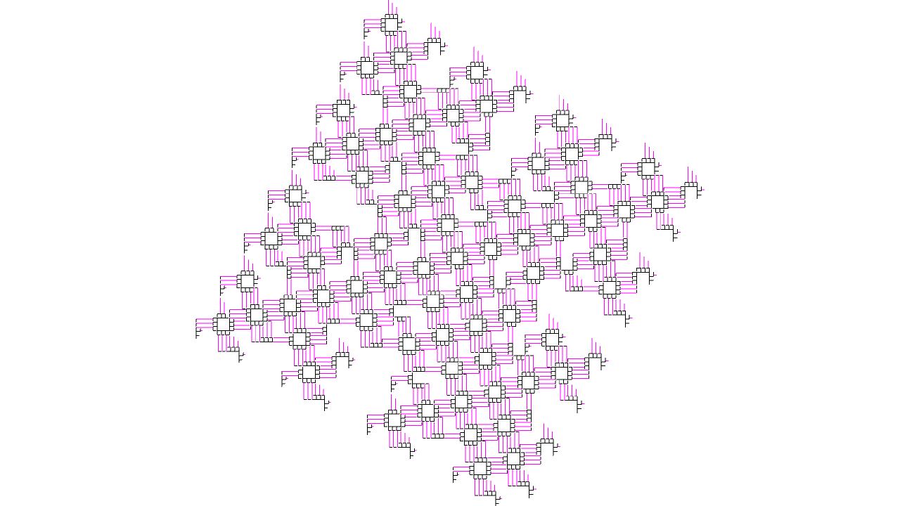 void rules(){ if(clock(7)==2){ // stop return; } if(clock(2)==0){ // segment next(rot(PI/2), 2); } else{ // square if(clock(0)==3){ if(clock(1)==2){ if(clock(3)==3 && clock(5)==0){ next(4); } else if(clock(3)==9 && clock(5)==1){ next(6).clr(0); } else{ next(rot(PI/2), 3); } } next(rot(-PI/2),1); } else{ if(clock(0)==1 && clock(1)==1 && clock(3)==1 && clock(5)==0){ if(clock(6)==1){ next(yaw(PI/2).pitch(PI/2), 7); } else{ next(rot(PI/2), 5).clr(0.5,0,0.5); } } next(0); } } }