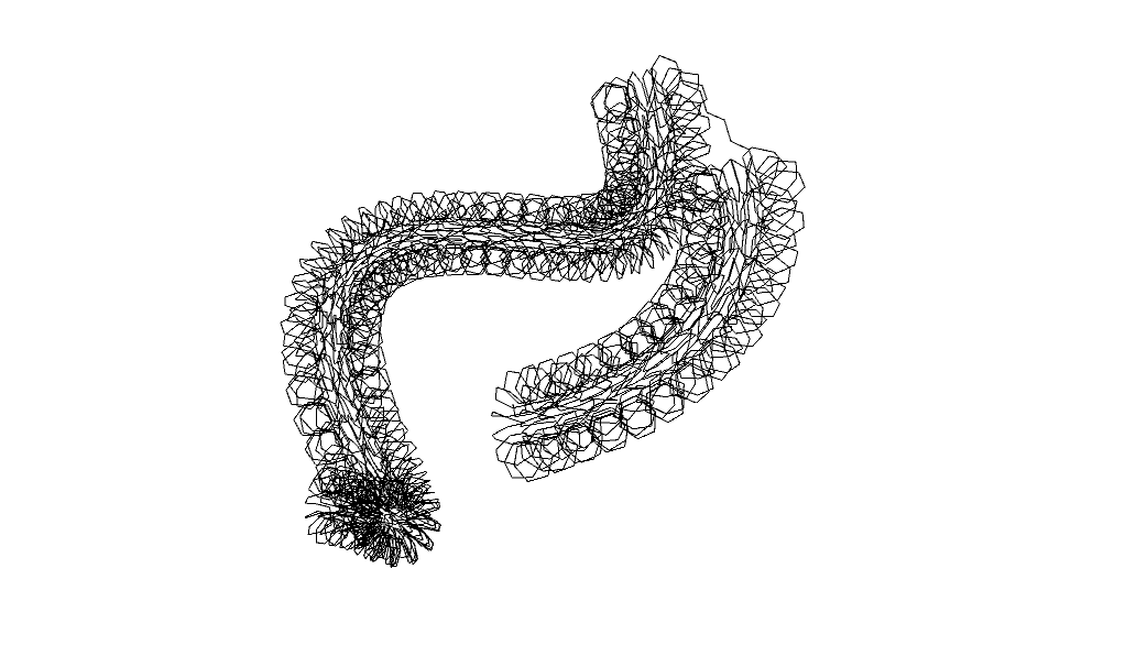 import processing.opengl.*; import igeo.*; IGeometry[][] modules; void setup(){ size(640, 480, IG.GL); IConfig.syncDrawAndDynamics=true; IG.open("module_geometry1.3dm"); modules = new IGeometry[4][]; modules[0] = IG.layer("m1").geometries(); modules[1] = IG.layer("m2").geometries(); modules[2] = IG.layer("m3").geometries(); modules[3] = IG.layer("m4").geometries(); IG.delAll(); IG.bg(0); new ClockStackAgent(new IVec(0,0,0), new IVec(10,0,0), new IVec(0,0,1), null); } class Orientation{ IVec dir, nml; // as xyz coordinates system, dir corresponds to Y and nml corresponds to Z boolean righthand; // right hand coordinates system or not IVec translate; // just to implement jumping behavior Orientation(IVec d, IVec n, boolean righthandsys){ dir=d; nml=n; righthand=righthandsys; } Orientation(IVec d, IVec n){ this(d,n,true); } Orientation(Orientation o){ dir=o.dir.cp(); nml=o.nml.cp(); righthand=o.righthand; } Orientation cp(){ return new Orientation(this); } boolean eq(Orientation o){ return o.righthand==righthand && o.dir.eq(dir) && o.nml.eq(nml) && (o.translate==null && translate==null || o.translate!=null&&translate!=null&&o.translate.eq(translate)); } boolean isParallel(Orientation o){ return o.righthand==righthand && o.dir.isParallel(dir) && o.nml.isParallel(nml); } IVec dir(){ return dir.cp(); } IVec front(){ return dir(); } IVec back(){ return dir().neg(); } IVec nml(){ return nml.cp(); } IVec up(){ return nml(); } IVec down(){ return nml().neg(); } IVec side(){ if(righthand){ return dir.cross(nml); }else{ return nml.cross(dir); } } IVec right(){ return side(); } IVec left(){ if(righthand){ return nml.cross(dir); }else{ return dir.cross(nml); } } Orientation rot(double ang){ dir.rot(nml, ang); return this; } Orientation rot(IVec ax, double ang){ dir.rot(ax,ang); nml.rot(ax,ang); return this; } Orientation pitch(double ang){ IVec ax = dir.cross(nml); dir.rot(ax, ang); nml.rot(ax, ang); return this; } Orientation yaw(double ang){ dir.rot(nml, ang); return this; } Orientation roll(double ang){ nml.rot(dir, ang); return this; } Orientation ref(IVec refNml){ dir.ref(refNml); nml.ref(refNml); righthand = !righthand; return this; } Orientation flip(){ dir.flip(); righthand = !righthand; return this; }// flip front/back Orientation flipNml(){ nml.flip(); righthand = !righthand; return this; }// flip up/down Orientation flipSide(){ righthand = !righthand; return this; }// flip left/right Orientation mul(double v){ dir.mul(v); return this; } Orientation div(double v){ dir.div(v); return this; } Orientation add(Orientation o){ dir.add(o.dir); nml.add(o.nml()); return this; } Orientation add(Orientation o, double f){ dir.add(o.dir, f); nml.add(o.nml(), f); return this; } Orientation sum(Orientation o, double f){ dir.mul(1-f).add(o.dir, f); nml.mul(1-f).add(o.nml(), f); return this; } Orientation mid(Orientation o){ return sum(o,0.5); } Orientation translate(IVec t){ return jump(t); } Orientation jump(IVec move){ translate=move; return this; } Orientation jump(double x, double y, double z){ return jump(new IVec(x,y,z)); } Orientation jump(Orientation or){ return jump(or.dir.cp()); } Orientation jump(double factor){ return jump(dir.cp().mul(factor)); } Orientation jump(){ return jump(dir.cp()); } } class Attribute extends IAttribute{ int delay=0; boolean noCollision=false; boolean noGeometry=false; Attribute(){ super(); } Attribute(IAttribute at){ super(at); } Attribute(Attribute at){ super(at); delay = at.delay; noCollision = at.noCollision; noGeometry = at.noGeometry; } Attribute cp(){ return new Attribute(this); } Attribute delay(int d){ delay = d; return this; } Attribute noCollision(){ noCollision=true; return this; } Attribute collision(){ noCollision=false; return this; } Attribute noGeometry(){ noGeometry=true; return this; } Attribute geometry(){ noGeometry=false; return this; } Attribute layer(String layerName){ super.layer = new ILayer(layerName); return this; } } class ClockStackAgent extends IAgent{ final double threshold = 5; // collision threshold IVec pos, pos2, prevPos; Orientation orient, prevOrient; int[] clocks; boolean isColliding = false, isStopped = false; ArrayList< IVec > pts; ArrayList< Orientation > nextOrient; ArrayList< int[] > nextClocks; ArrayList< Attribute > nextAttr; IBounds bounds; int delayCount; ClockStackAgent parent; ClockStackAgent(IVec p, Orientation o, int[] clok, ClockStackAgent parentAgent){ pos = p; orient = o; clocks = clok; parent = parentAgent; if(parent!=null){ prevPos=parent.pos.cp(); prevOrient=parent.orient.cp(); } delayCount=0; } ClockStackAgent(IVec p, IVec d, IVec n, int[] clok, ClockStackAgent parentAgent){ this(p, !d.isParallel(n)?new Orientation(d,d.cross(n).icross(d)): n.isParallel(IG.zaxis)?new Orientation(d,d.cross(0,1,0).icross(d)):new Orientation(d,d.cross(0,0,1)), clok, parentAgent); } ClockStackAgent(IVec p, IVec d, IVec n, ClockStackAgent parentAgent){ this(p,d,n,new int[0], parentAgent); } ClockStackAgent(IVec p, IVec d, ClockStackAgent parentAgent){ this(p,d,new IVec(0,0,1),null, parentAgent); } IVec pos2(){ if(pos2==null) pos2 = pos.cp(orient.dir); return pos2; } IVec prevPos(){ return prevPos; } Orientation prevOrient(){ return prevOrient; } IAttribute defaultAttribute(){ return new Attribute(); } ClockStackAgent delay(int d){ IAttribute attr = attr(); if(attr==null){ attr = defaultAttribute(); attr(attr); } ((Attribute)attr).delay(d); return this; } ClockStackAgent noCollision(){ IAttribute attr = attr(); if(attr==null){ attr = defaultAttribute(); attr(attr); } ((Attribute)attr).noCollision(); return this; } ClockStackAgent collision(){ IAttribute attr = attr(); if(attr==null){ attr = defaultAttribute(); attr(attr); } ((Attribute)attr).collision(); return this; } boolean isDelayed(){ if(attr()==null) return false; if(((Attribute)attr()).delay <= delayCount) return true; return false; } int delayedTime(){ if(attr()==null) return time(); return delayCount - ((Attribute)attr()).delay; } boolean isCollidable(){ if(attr()==null) retur